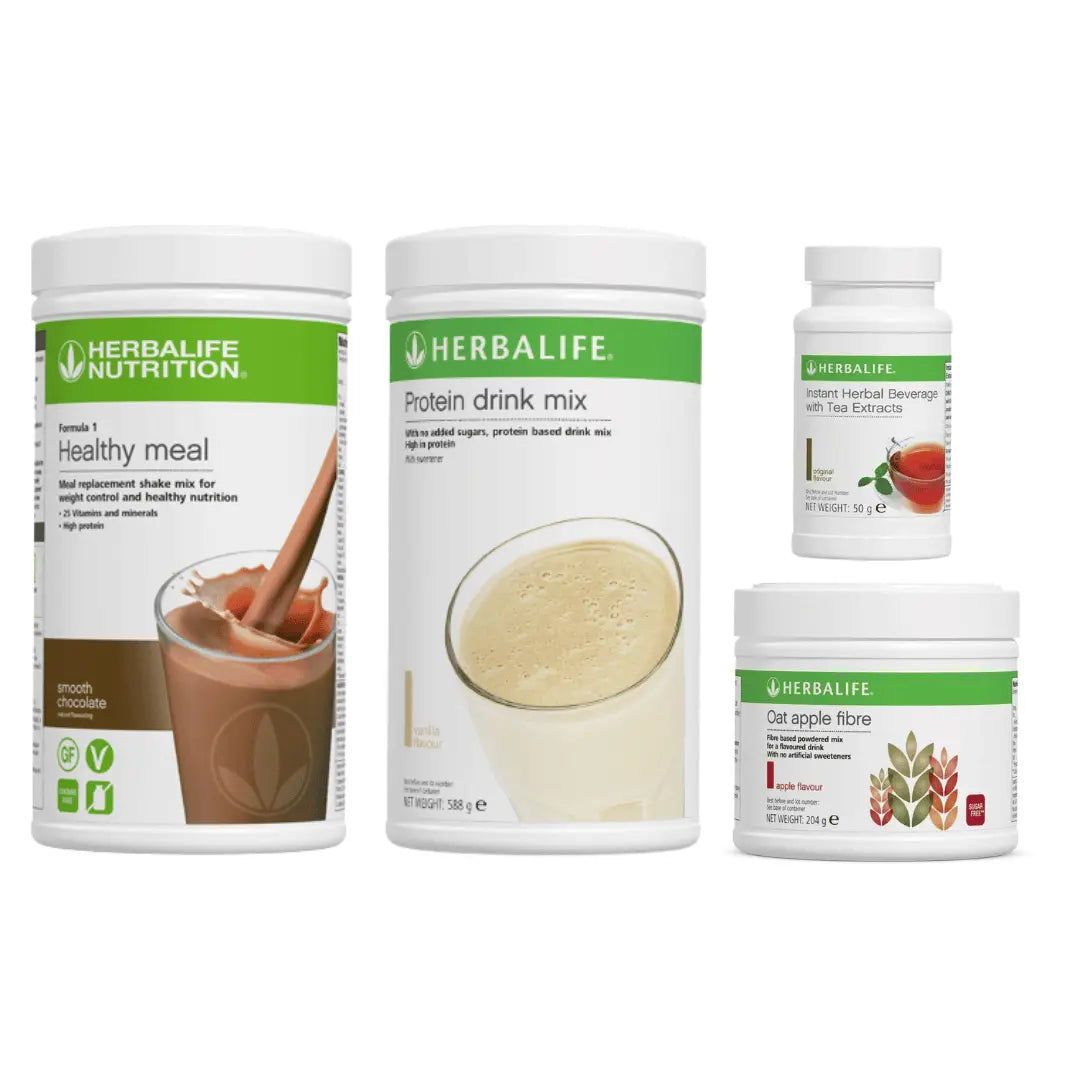 Introducing the ultimate Herbalife Nutrition Product Set! This comprehensive set features an array of top-quality Herbalife products designed to elevate your nutrition game. Inside, you'll find the delectable Healthy Meal shake, Protein Drink Mix to fuel your muscles, Instant Herbal Beverage for a refreshing boost, and Oat Apple Fibre for digestive health. Perfect for those committed to maintaining a balanced diet and achieving optimal well-being. Each product is carefully formulated to provide essential nutrients and enhance your daily nutrition. Available in a variety of delicious flavors and generous sizes to suit your lifestyle needs.